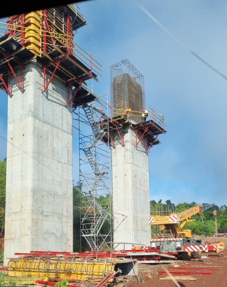 En la margen derecha, en Los Cedrales, prosigue la ejecución de las pilas que sostendrán el viaducto. Para ello se emplean encofrados y se realiza un control riguroso de niveles, a fin de garantizar la estabilidad estructural. Asimismo, se efectuó la carga y el vertido de hormigón en pilotes y pilas, con monitoreos permanentes de asentamiento y temperatura, tanto en la Planta de Acaray como en el frente de obra, cumpliendo con las especificaciones técnicas establecidas.