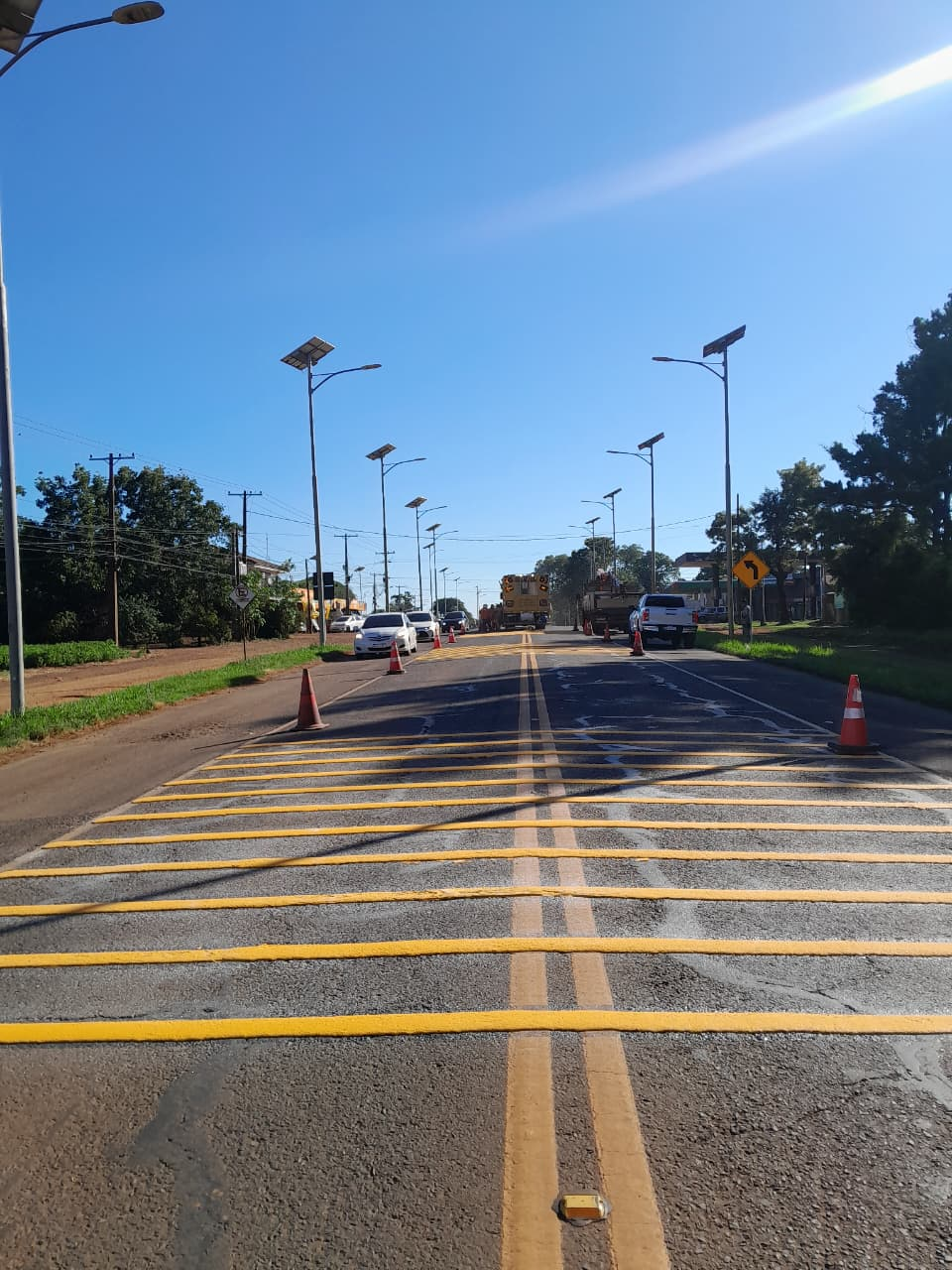 Debido a las condiciones de humedad, algunas actividades serán concluidas entre el lunes y el martes próximos, o cuando el clima lo permita. Entre ellas figuran la finalización de las bandas alertadoras en banquinas hacia Encarnación, la culminación de las líneas preventivas en dirección a Ciudad del Este y la colocación adicional de un cartel de 40 km/h, junto con señalización informativa complementaria.
